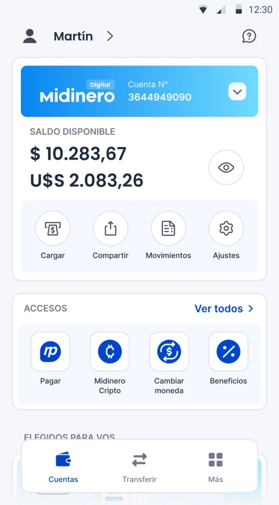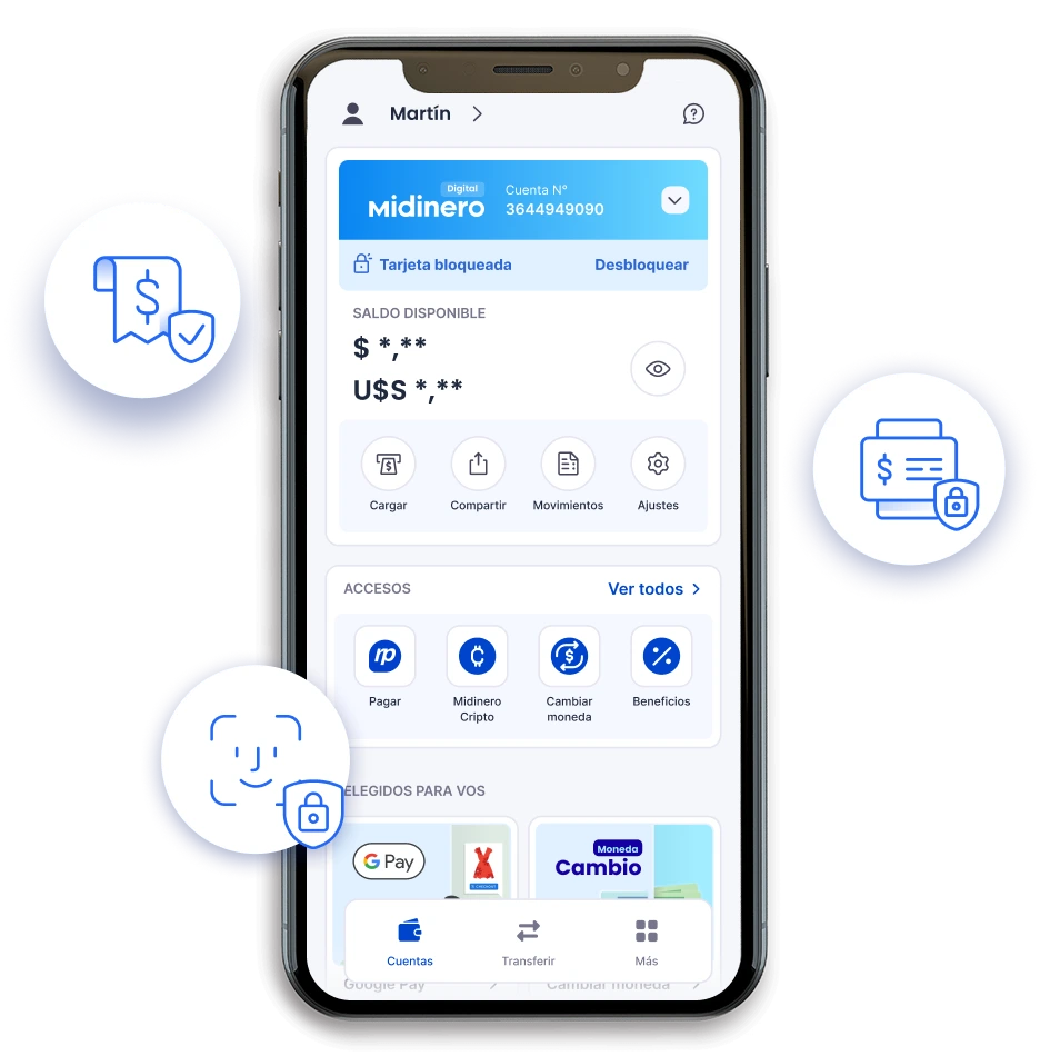Recargar tu Midinero Digital es fácil y rápido. Podés hacerlo de tres maneras: